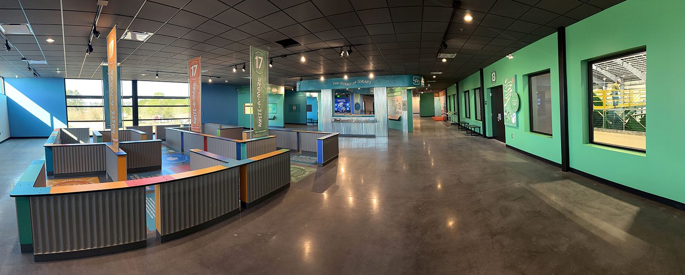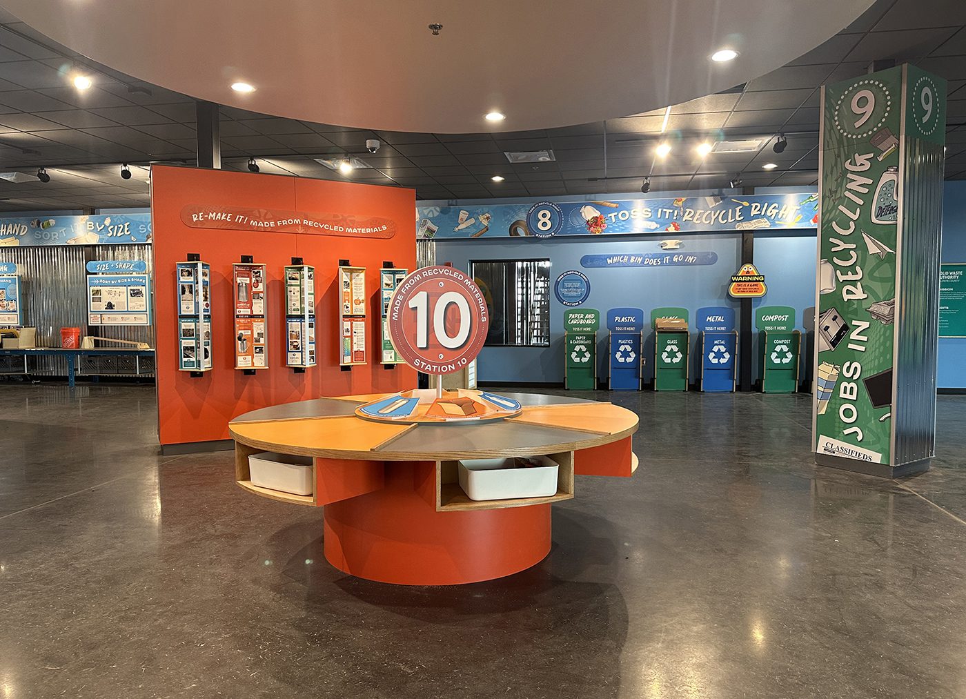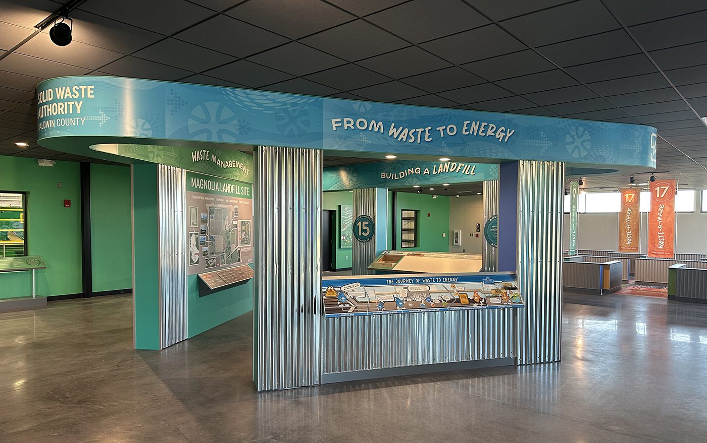 THE WASTE & RECYCLING ADVENTURE CENTER is a two-story, 7,000 sq. ft. hands-on educational experience located in Baldwin County, Alabama. Comprised of 20 stations on 2 floors with a second level overlook of the MRF in operation, tours can be scheduled for a wide range of ages, school groups and interests.